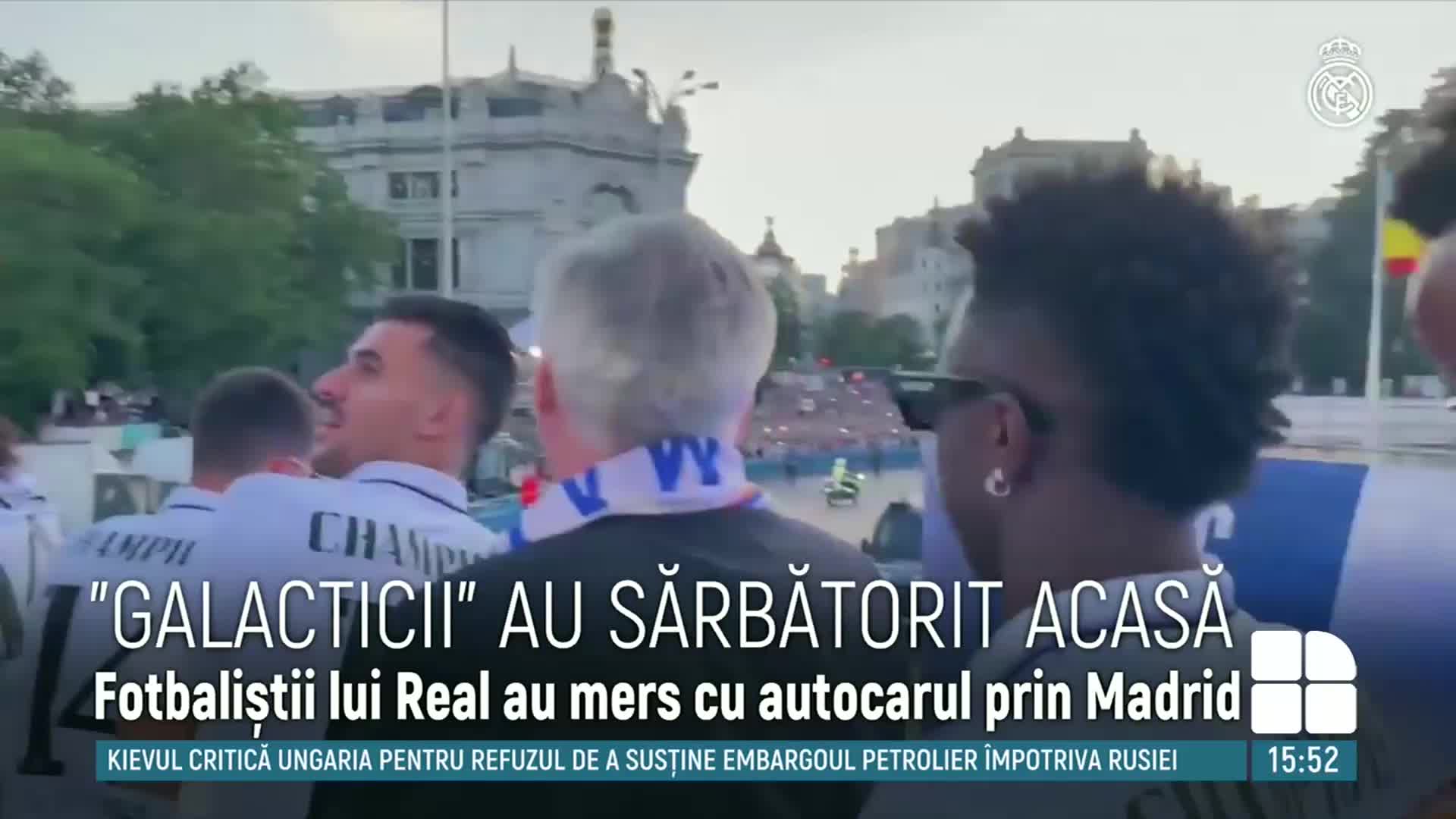 "Regina Europei", Real Madrid, continuă să sărbătorească. Formația spaniolă, care a cucerit trofeul Ligii Campionilor, a mers cu autocarul prin capitala Spaniei, iar zeci de mii de fani i-au întâmpinat pe favoriții lor.