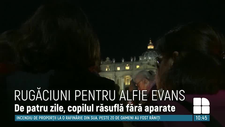 Cazul micuţului Alfie Evans din Marea Britanie a sensibilizat milioane de oameni din întreaga lume. Noaptea trecută, zeci de credincioşi s-au adunat la Vatican şi s-au rugat pentru sănătatea copilului. La patru zile după ce a fost deconectat de la aparate, Alfie încă respiră singur.
