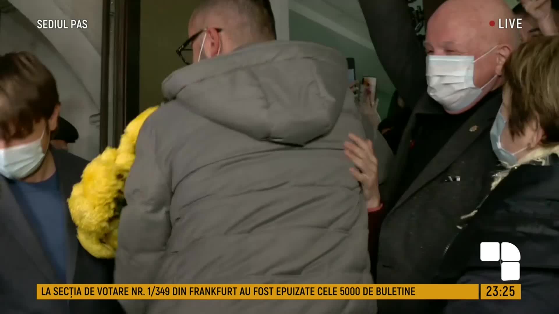 Aplauze şi strigăte de bucurie la sediul Partidului Acţiune şi Solidaritate, după ce au fost anunţate rezultatele preliminare ale turului doi al alegerilor prezidenţiale.