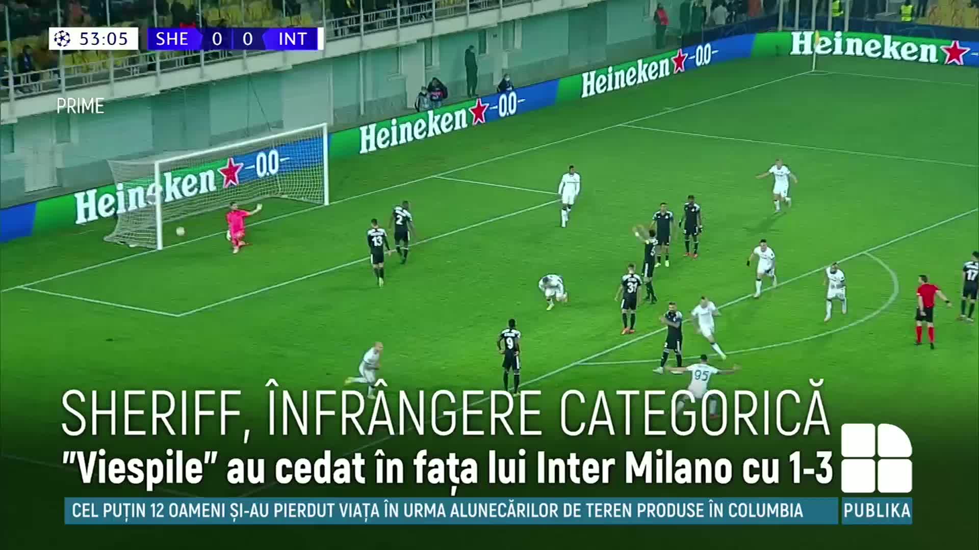 Sheriff Tiraspol a rezistat doar o repriză în cel de-al doilea meci cu Internazionale Milano din Liga Campionilor. "Viespile" au cedat pe teren propriu în fața "nerazzurrilor", scor 1-3 .