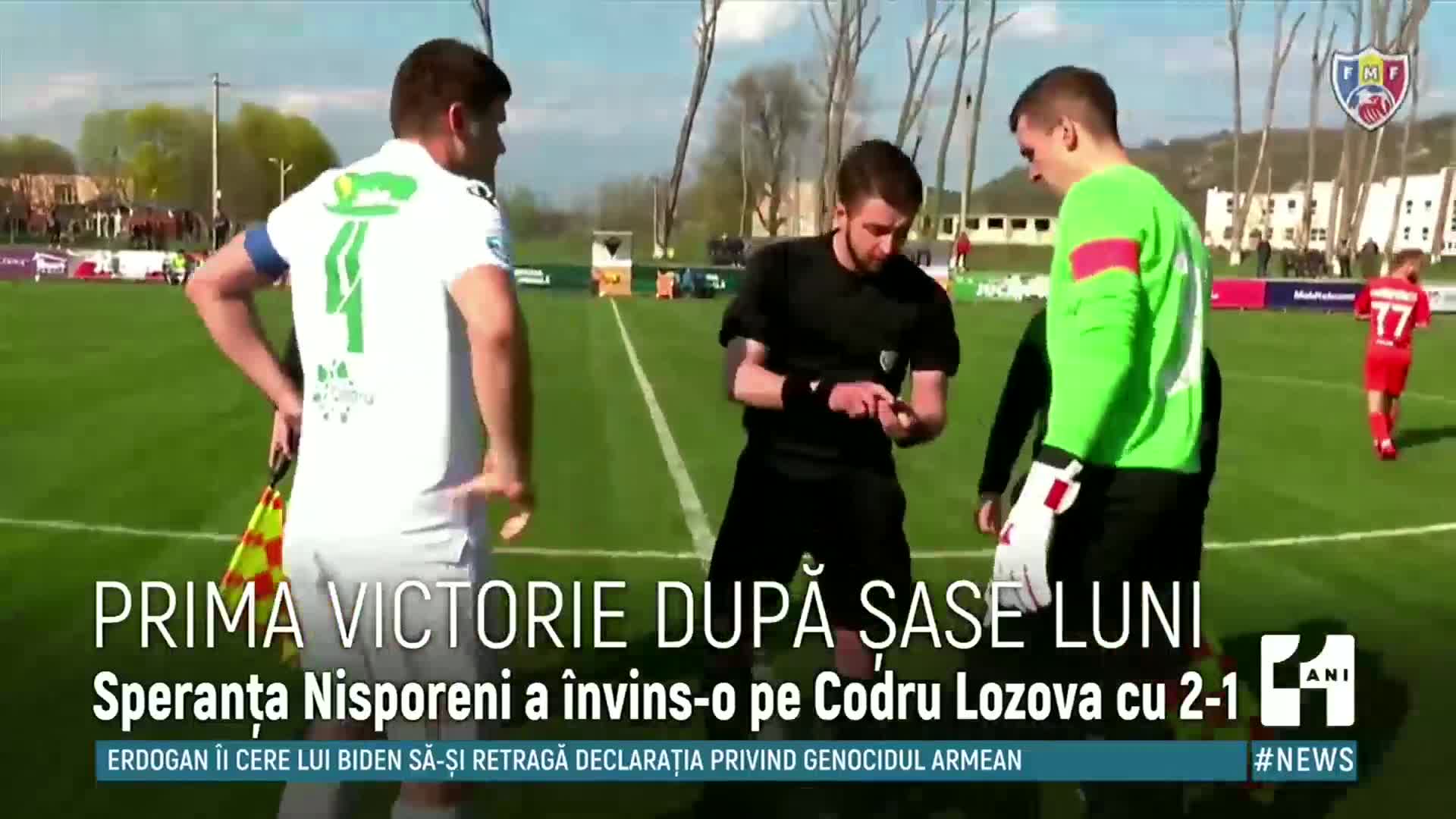 Speranța Nisporeni a sparta gheața și a obținut prima victorie după jumătate de an. "Alb-albaștrii" au învins Codru Lozova cu 2-1 și astfel au întrerupt seria de 11 meciuri fără victorie în Divizia Națională.
