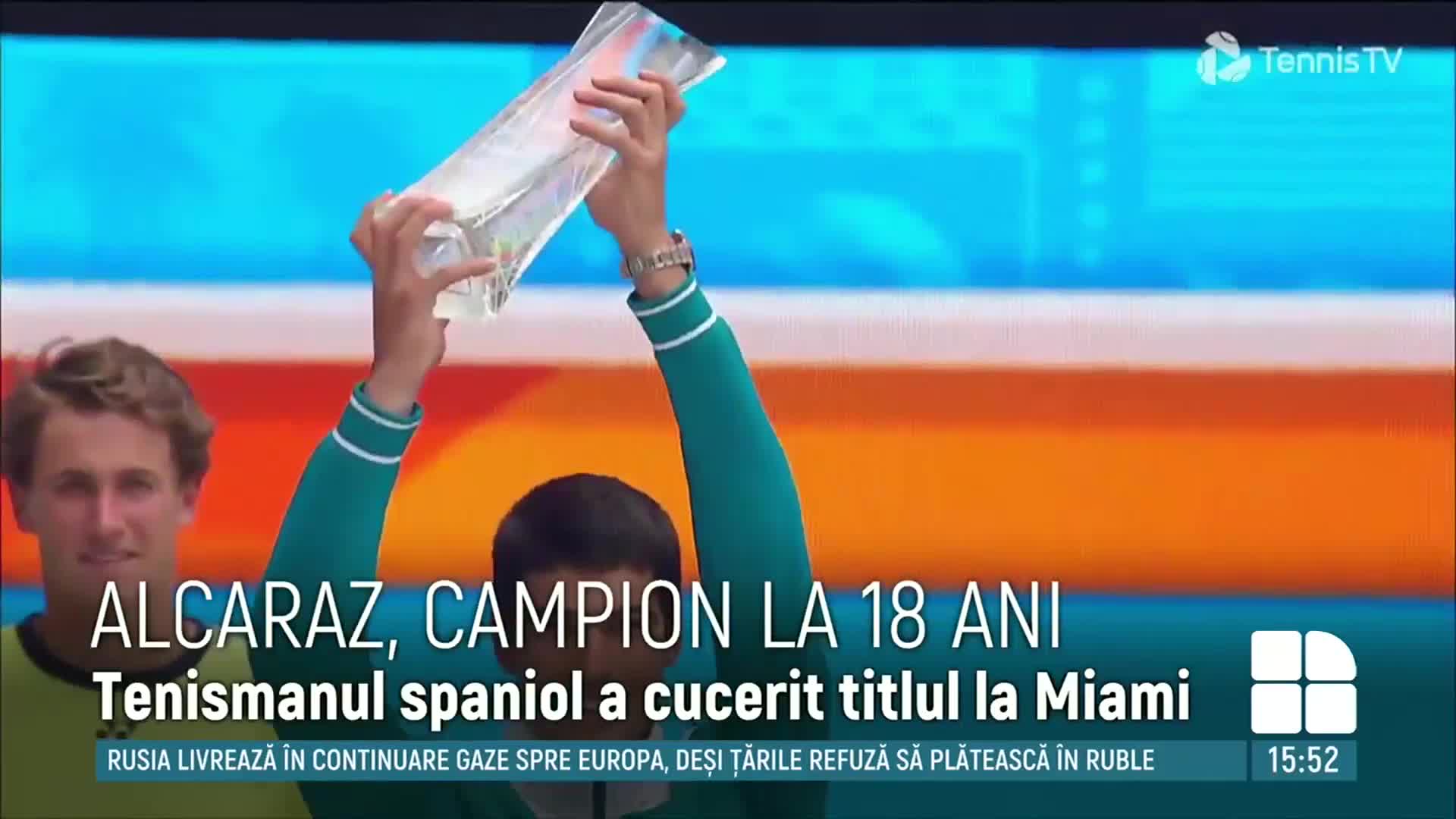 Tenismanul spaniol Carlos Alcaraz a devenit cel mai tânăr campion al turneului Masters de la Miami. Jucătorul de 18 ani l-a învins în finală pe norvegianul Casper Ruud cu 7-5, 6-4.