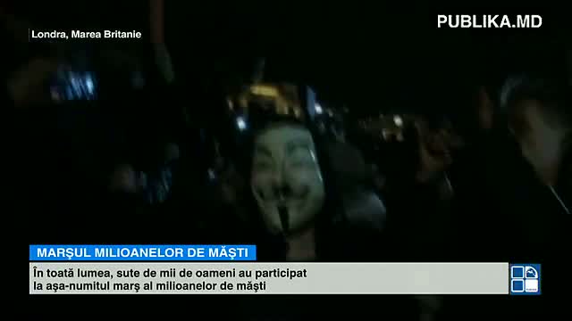 Sute de mii de oameni din Statele Unite până în Marea Britanie, Germania şi Australia au participat la aşa-numitul Marş al Milioanelor de măşti. Manifestanţii cu feţele acoperite au ieşit pe străzi ca să protesteze faţă de măsurile de austeritate, supravegherea comunicaţiilor şi corupţia din societate. Violenţe au izbucnit la Londra şi Washington.