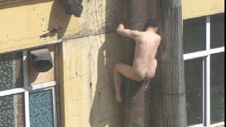Căutătorul de plăceri carnale era în mijlocul "acţiunii" când poliţia a bătut la uşă. Disperat să nu fie prins, omul şi-a abandonat hainele şi a tăiat-o pe acoperiş, iar apoi călare pe un burlan, reuşind în final să scape. El a fost urmat de două femei, dintre care una purta doar un prosop pe ea.