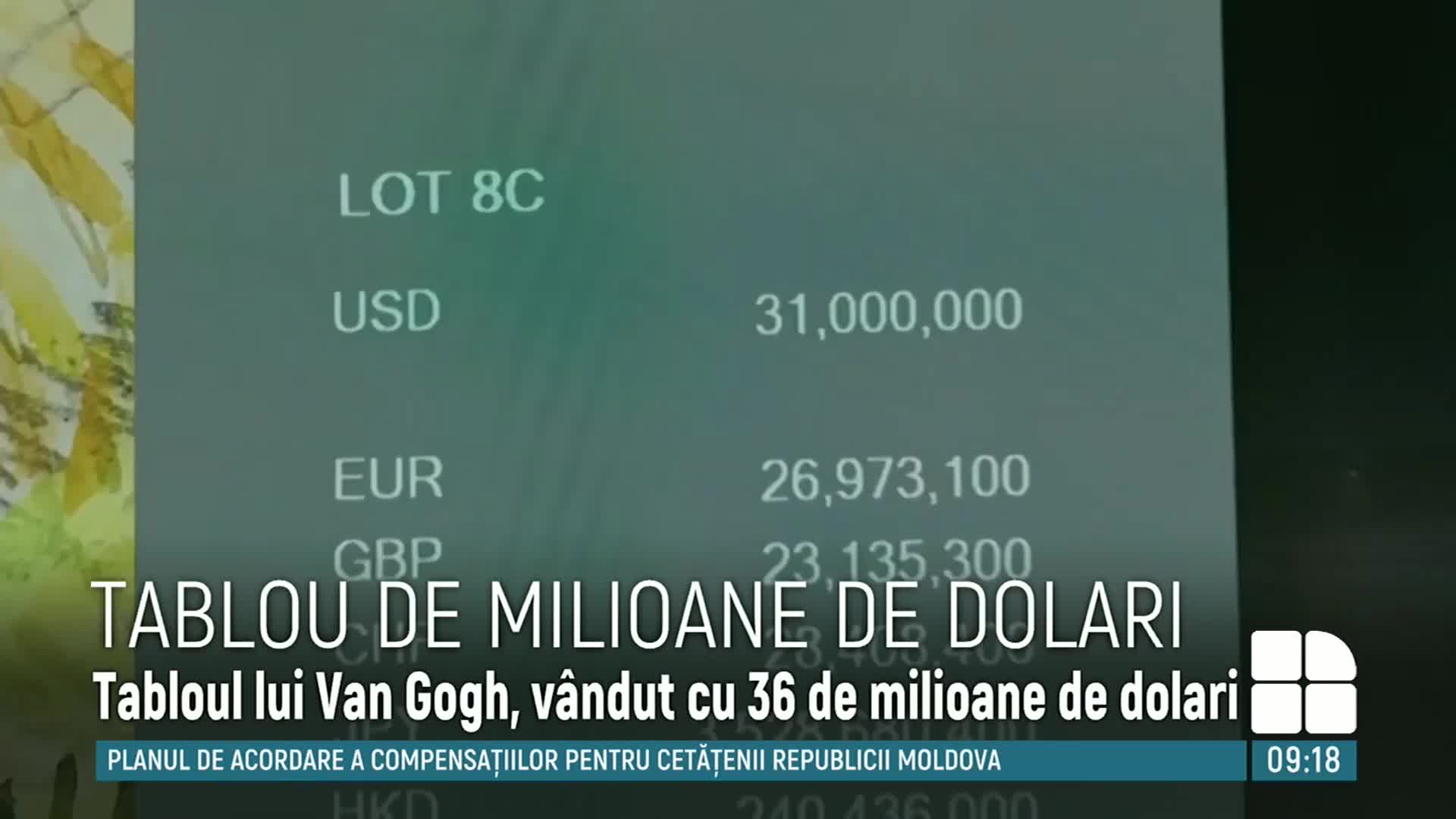 Un tablou semnat de Vincent van Gogh a fost vândut cu aproape 36 de milioane de dolari la o licitaţie. Pictura a fost confiscată de nazişti în timpul invadării Franţei în cel de-al Doilea Război Mondial.