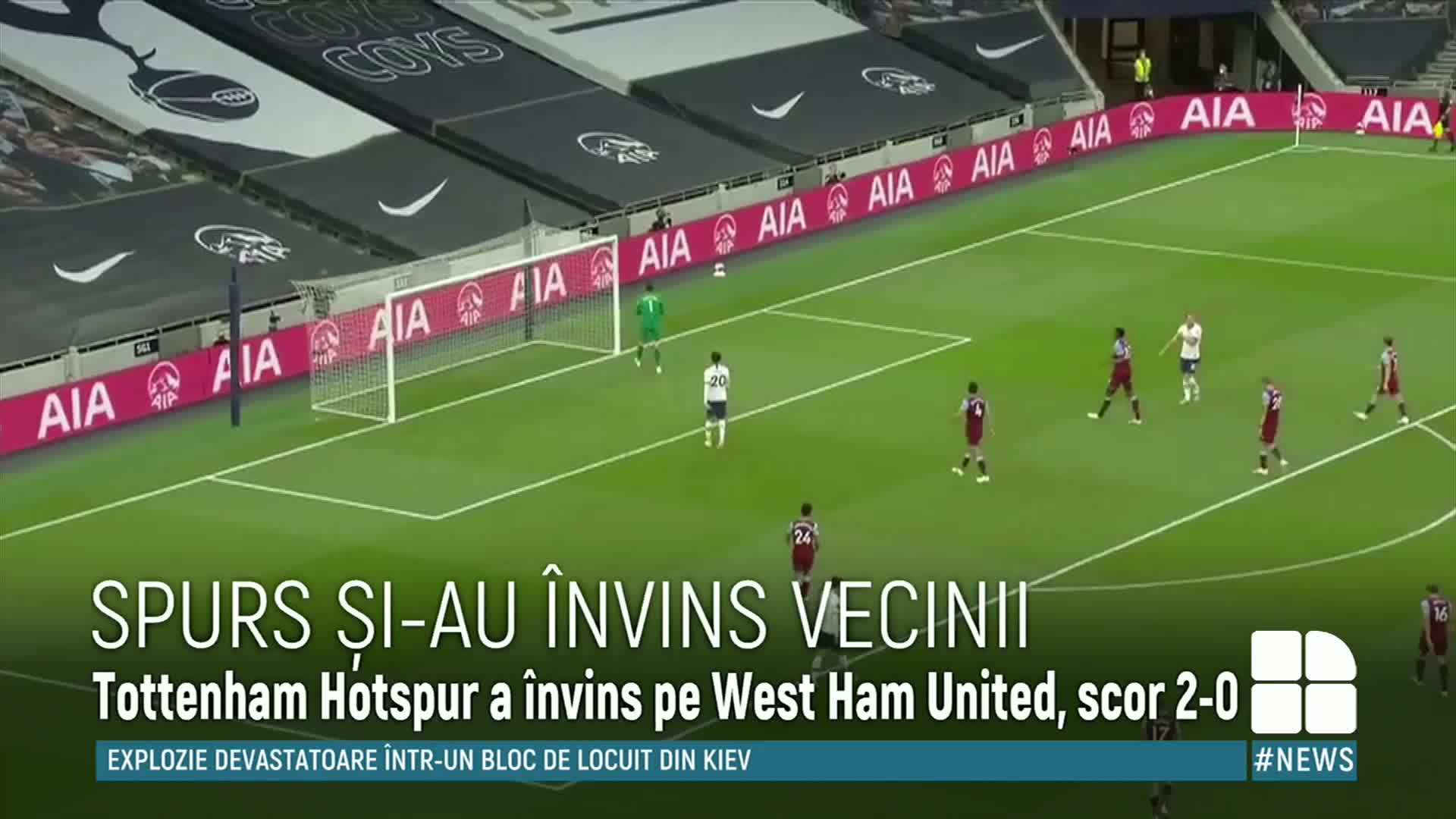 Tottenham Hotspur a obținut prima victorie după pauză cauzată de pandemie. Echipa lui Jose Mourinho a dispus acasă de West Ham United cu 2-0 într-unul din derby-urile londoneze.