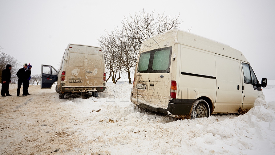 Pe drumul ce duce din Drochia spre Bălți mai multe mașini au derapat și au ajuns în șanțuri din cauza drumului necurățat.