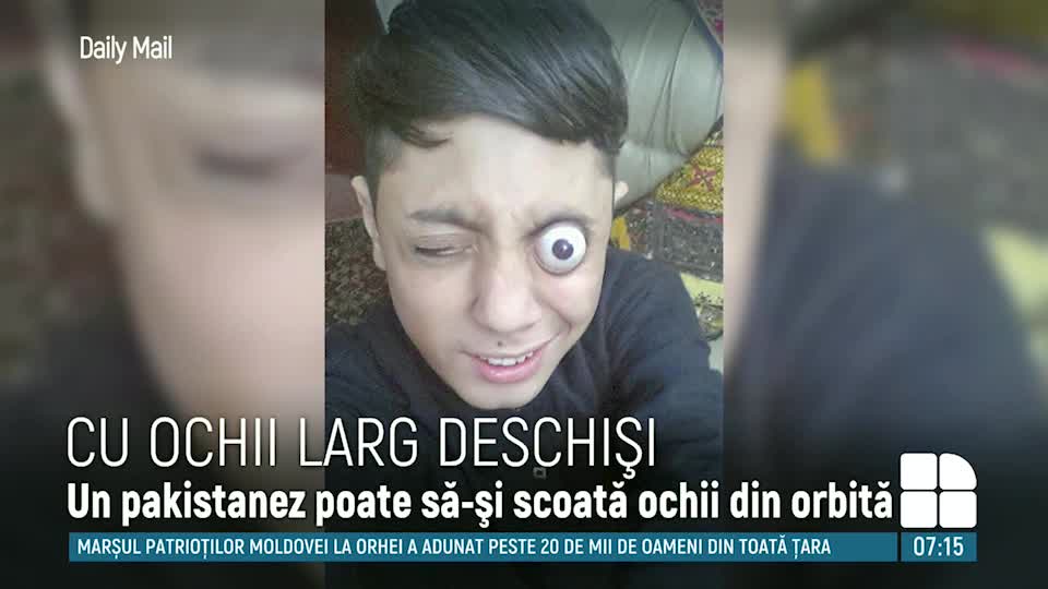 Un tânăr din Pakistan a făcut senzaţie pe internet datorită talentului său. Ahmed Khan, în vârstă de 16 ani, poate să-şi scoată ochii la 22 de milimetri în afara craniului. Datorită acestei abilităţi, băiatul ar putea fi inclus în Guinness Book.