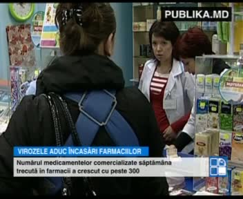 Din cauza numărului tot mai mare de cazuri de viroze, farmaciile au încasări în creştere. Datele Centrului Naţional de Sănătate Publică arată că săptămâna trecută farmaciile au vândut 22.565 de medicamente, cu peste 300 mai mult decât în precedenta.