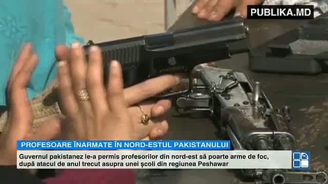 11 profesoare de la un Colegiu de femei din Pakistan învață să mânuiască armele de foc. Decizia Guvernului pakistanez de a le permite profesorilor din regiunea de nord-est a țării să poarte arme vine ca răspuns la atacul asupra unei școli din orașul indian Peshawar, la sfârșitul anului trecut.