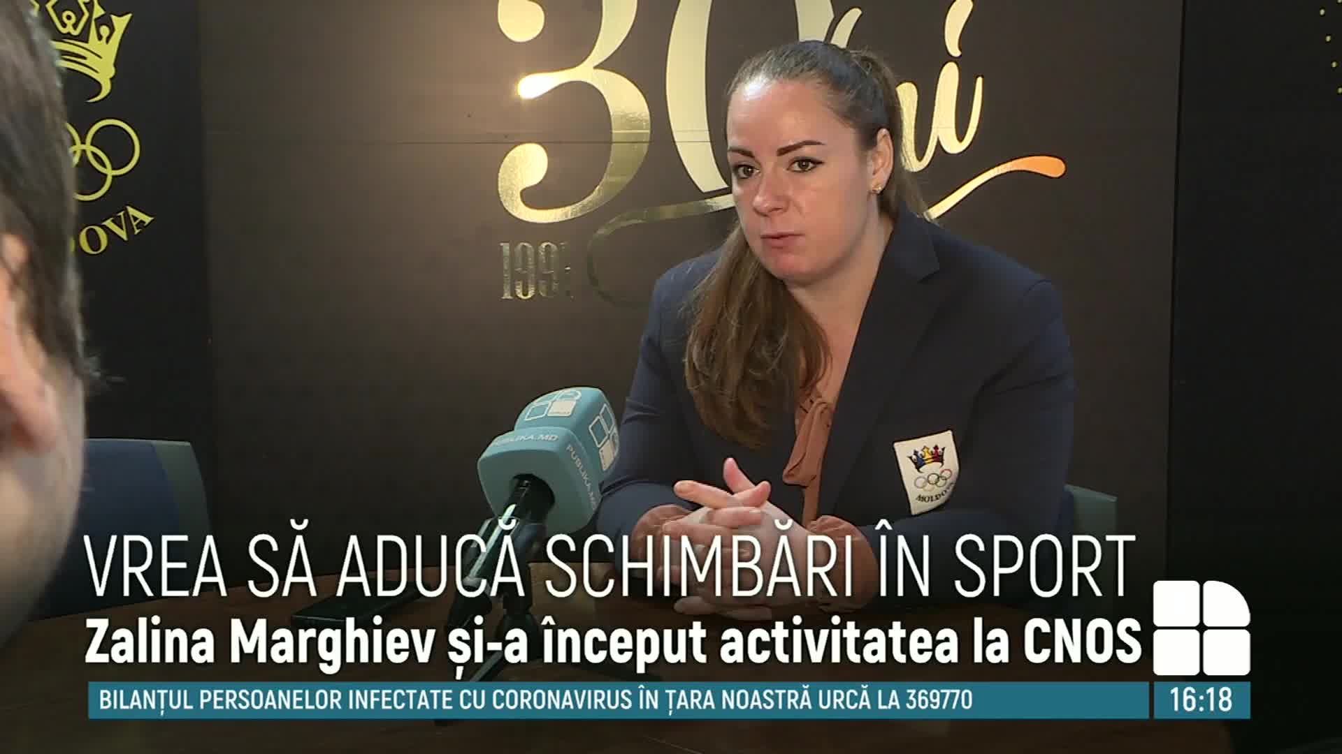 Una dintre cele mai cunoscute sportive ale țării noastre, Zalina Marghiev, se simte bine în noul rol, cel de vicepreședinte al Comitetului Național Olimpic și Sportiv. Atleta afirmă că determinarea și perseverența de care a dat dovadă la numeroasele competiții o va ajuta să aducă un suflu nou sportului moldovenesc.